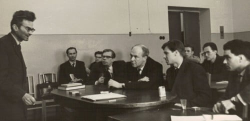 Pomeranchuk lecturing at the Steklov Institute, 1962.